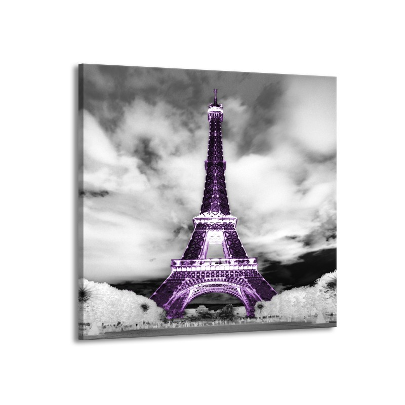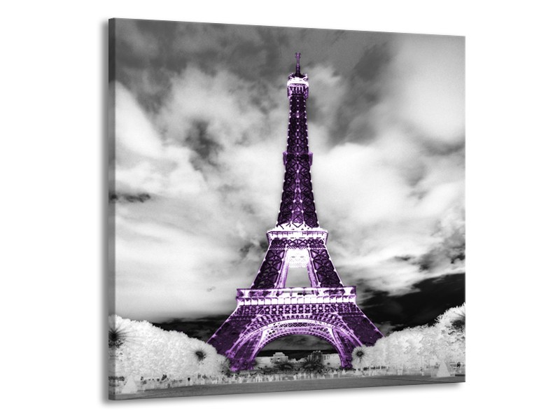 Glasschilderij Parijs, Eiffeltoren | Zwart, Wit, Paars | 50x50cm 1Luik