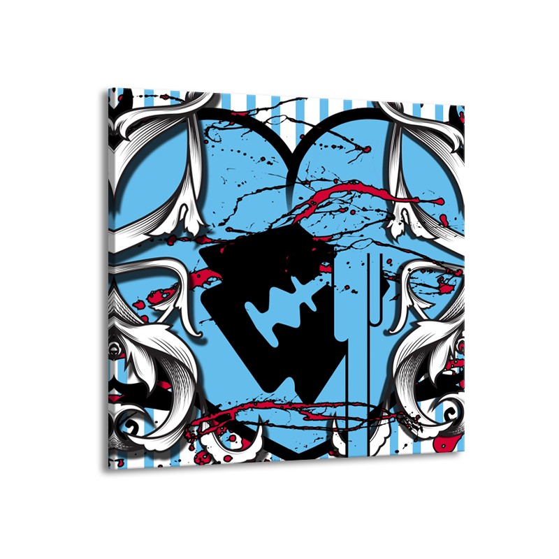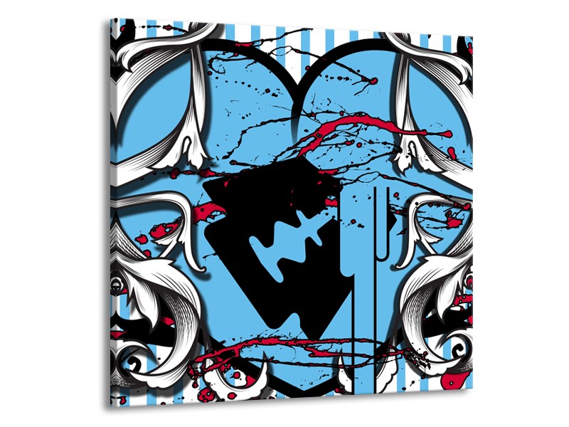Glasschilderij Popart, Hart | Grijs, Zwart, Blauw | 50x50cm 1Luik