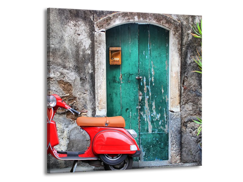 Glasschilderij Scooter, Motor | Groen, Rood, Grijs | 50x50cm 1Luik