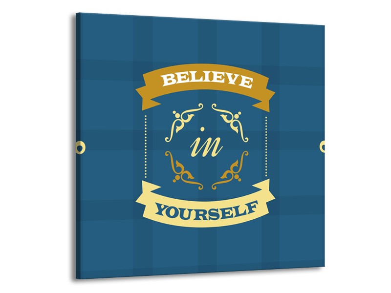 Glasschilderij Tekst, Modern | Blauw, Geel | 50x50cm 1Luik