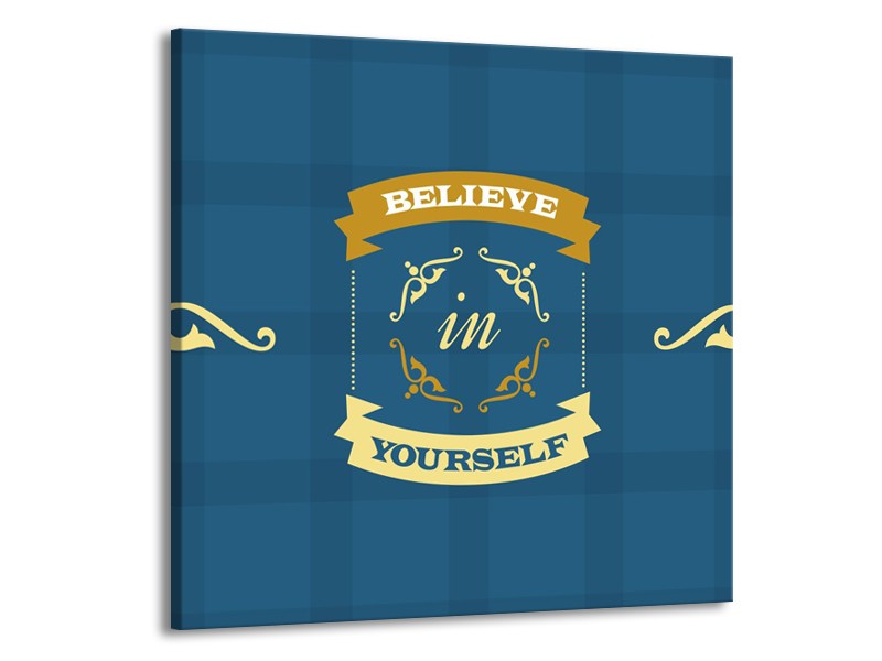 Glasschilderij Tekst, Modern | Blauw, Geel | 50x50cm 1Luik