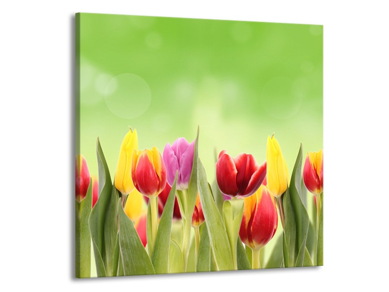 Glasschilderij Tulpen, Bloemen | Groen, Rood, Geel | 50x50cm 1Luik
