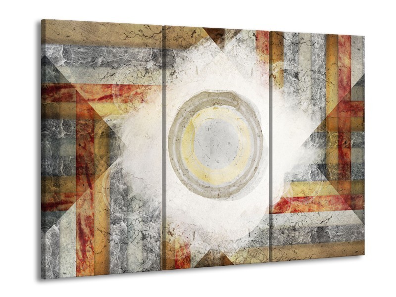 Glasschilderij Abstract | Grijs, Crème , Bruin | 60x90cm 3Luik