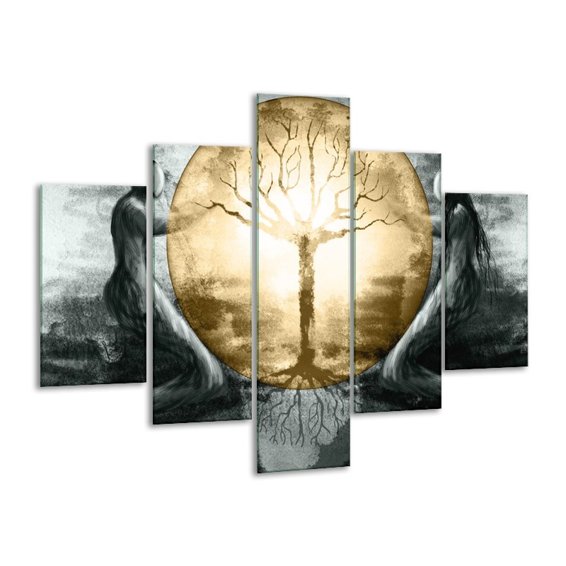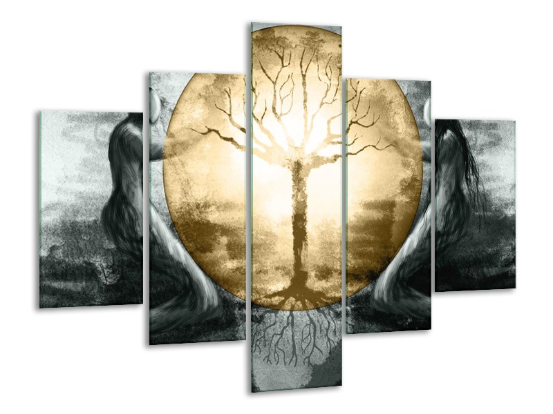 Glasschilderij Abstract | Grijs, Goud | 100x70cm 5Luik