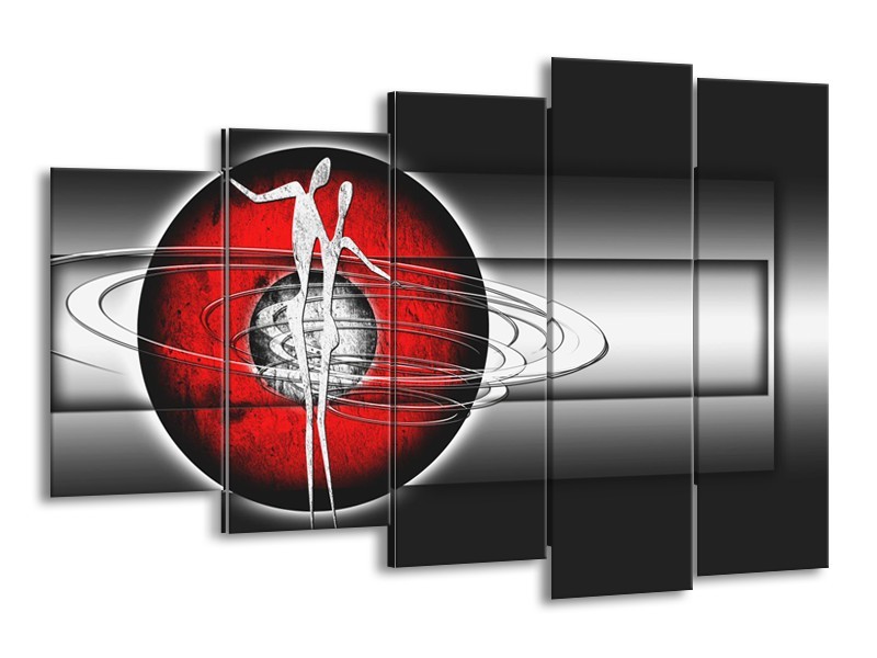 Glasschilderij Abstract, Modern | Zwart, Wit, Rood | 150x100cm 5Luik