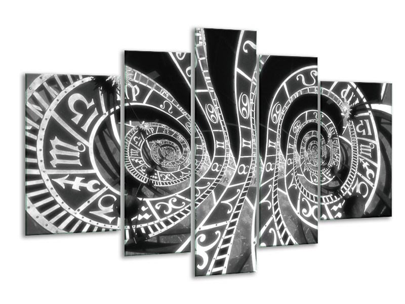 Glasschilderij Abstract | Zwart, Grijs, Wit | 170x100cm 5Luik