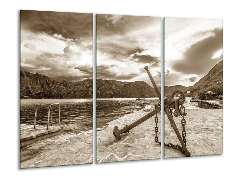 Glasschilderij Anker | Sepia | 120x80cm 3Luik