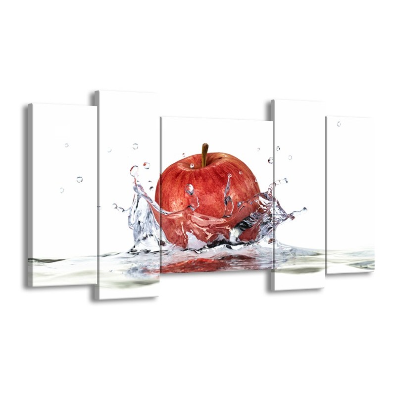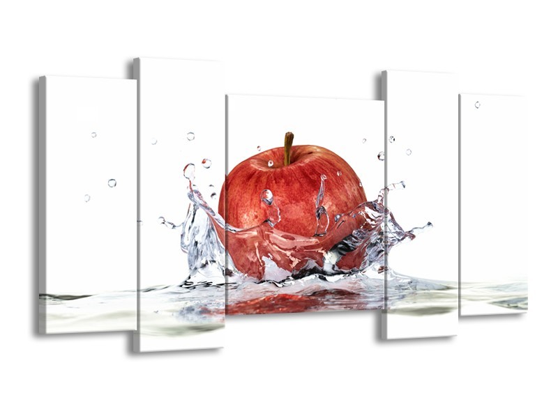 Glasschilderij Appel, Keuken | Rood, Wit, | 120x65cm 5Luik