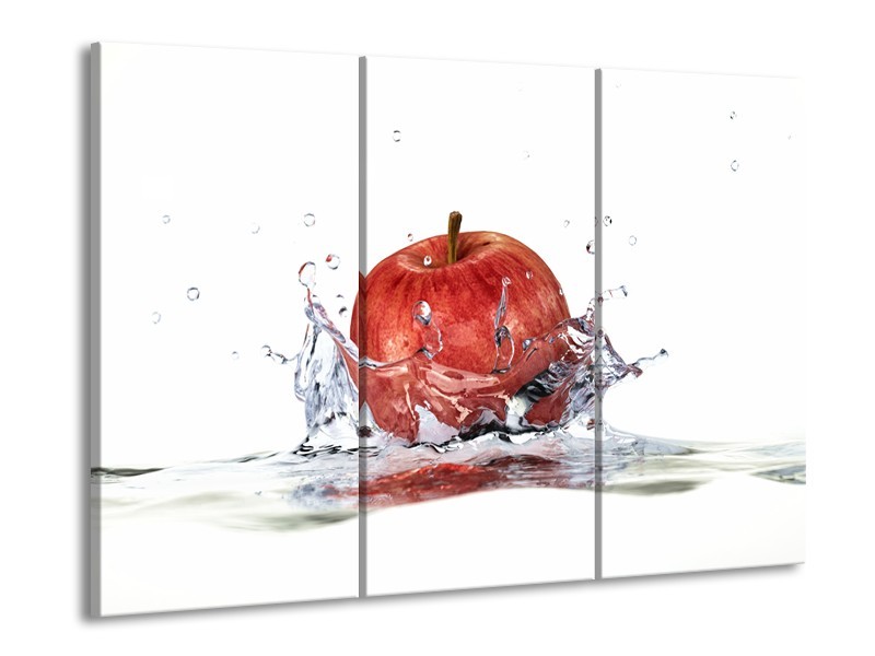 Glasschilderij Appel, Keuken | Rood, Wit, | 60x90cm 3Luik