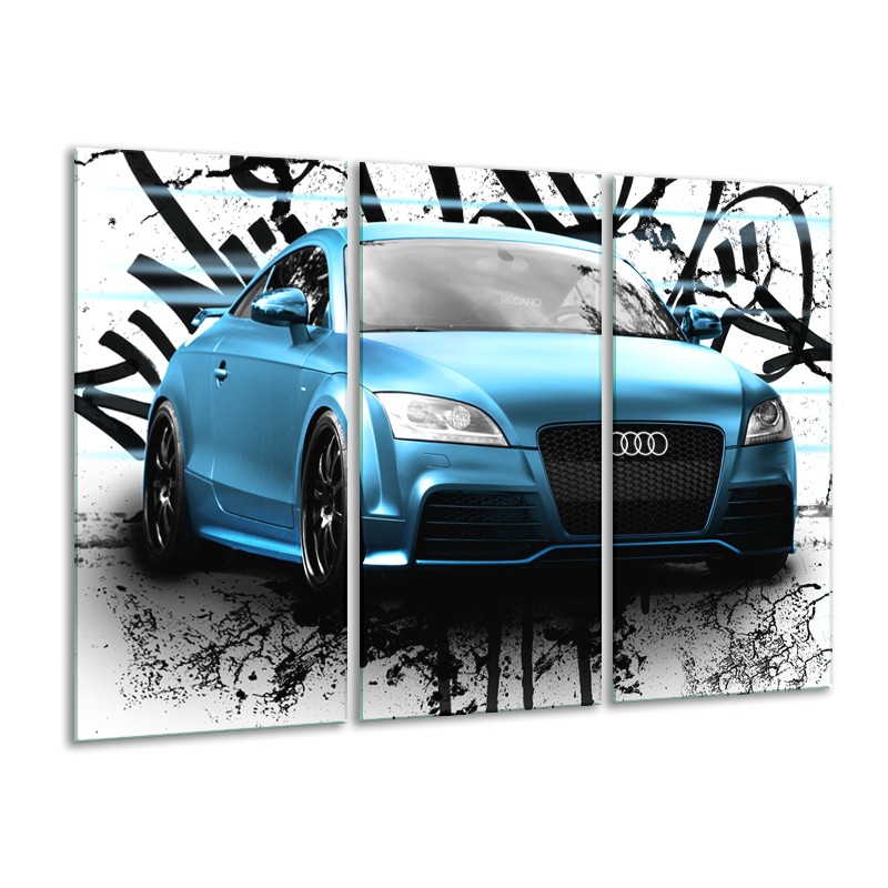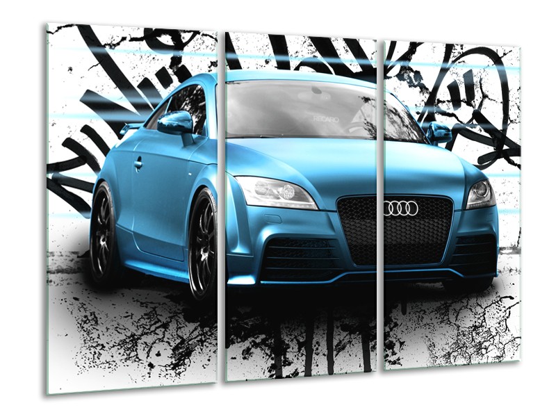 Glasschilderij Audi, Auto | Blauw, Zwart, Grijs | 120x80cm 3Luik