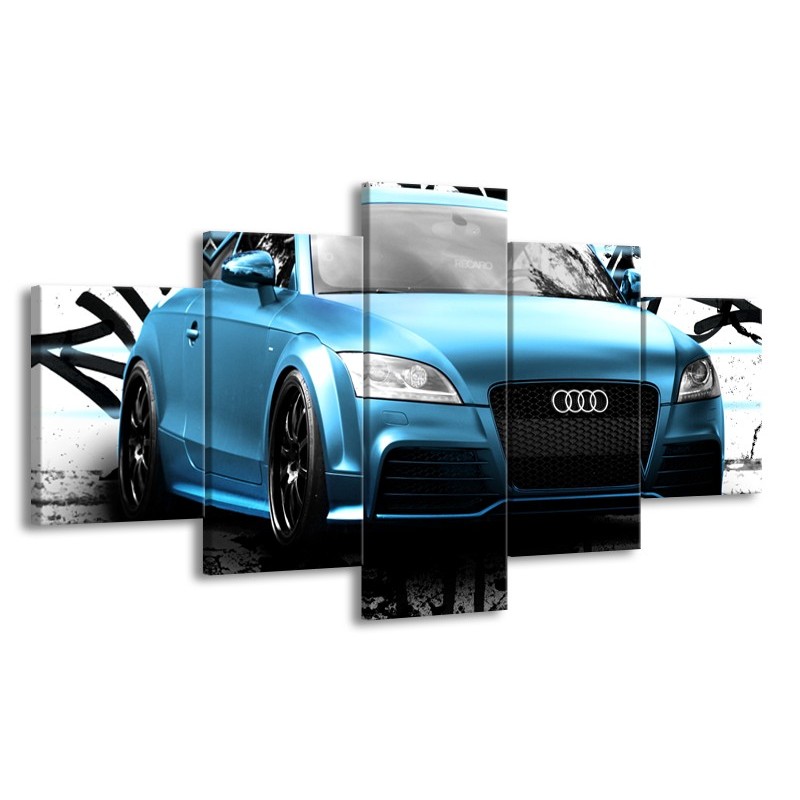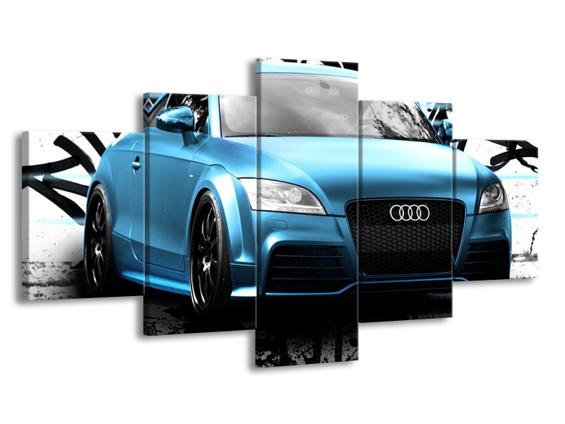 Glasschilderij Audi, Auto | Blauw, Zwart, Grijs | 150x80cm 5Luik