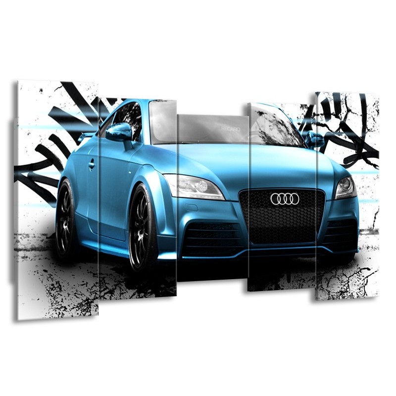 Glasschilderij Audi, Auto | Blauw, Zwart, Grijs | 150x80cm 5Luik