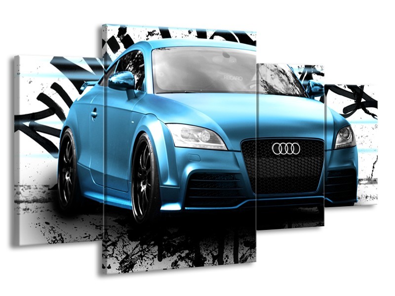 Glasschilderij Audi, Auto | Blauw, Zwart, Grijs | 160x90cm 4Luik