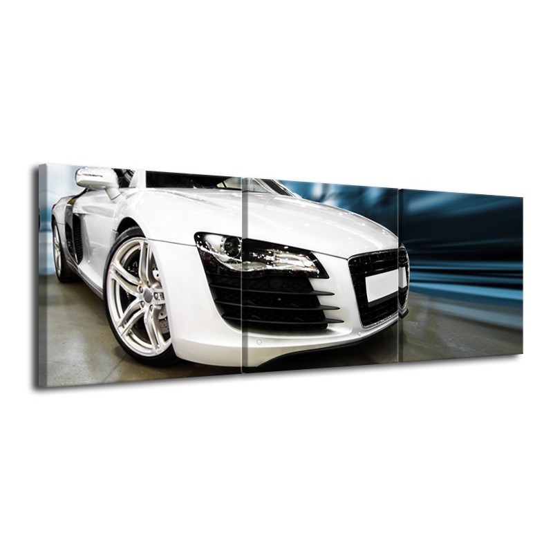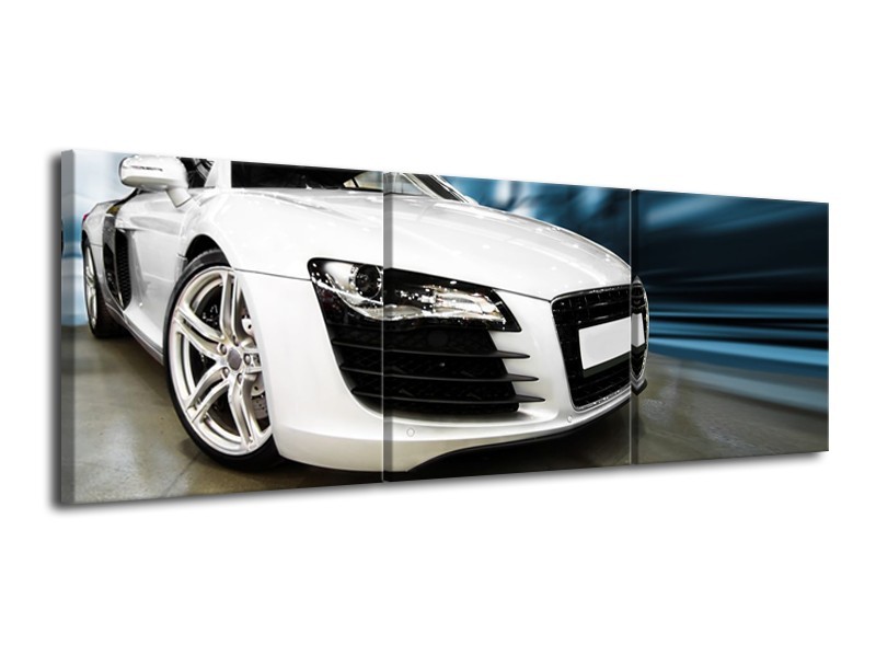 Glasschilderij Audi, Auto | Wit, Blauw | 120x40cm 3Luik