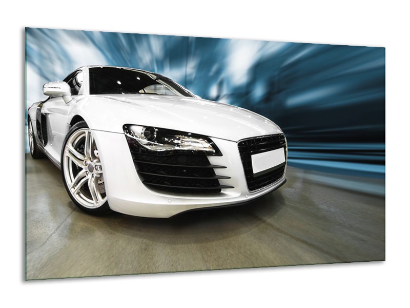 Glasschilderij Audi, Auto | Wit, Blauw | 120x70cm 1Luik