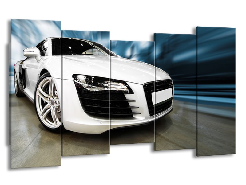 Glasschilderij Audi, Auto | Wit, Blauw | 150x80cm 5Luik