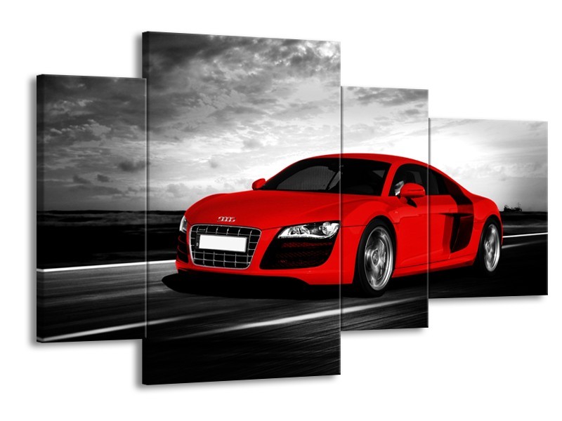 Glasschilderij Audi, Auto | Zwart, Grijs, Rood | 120x75cm 4Luik