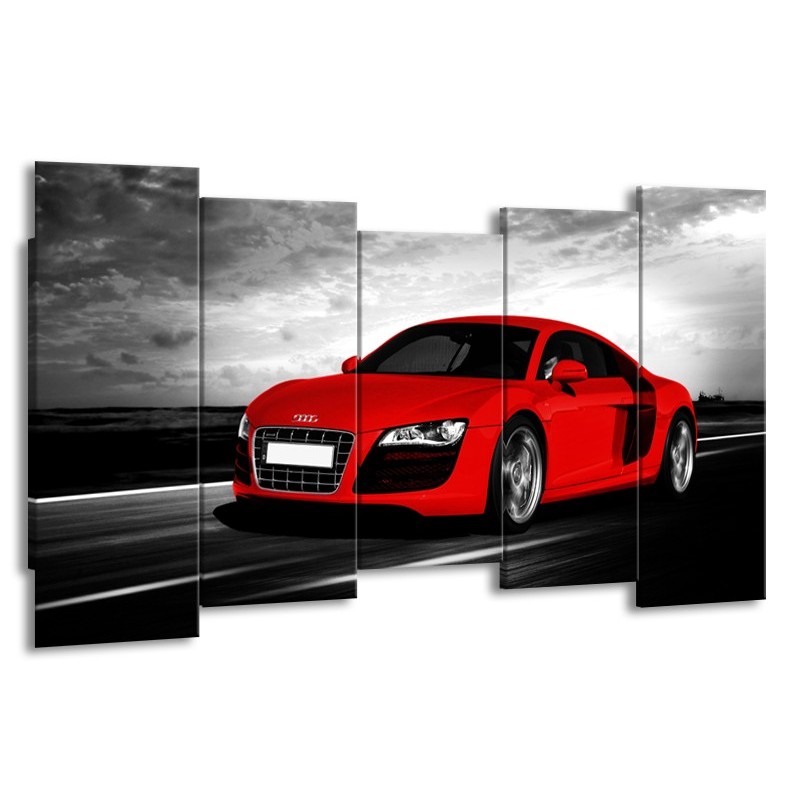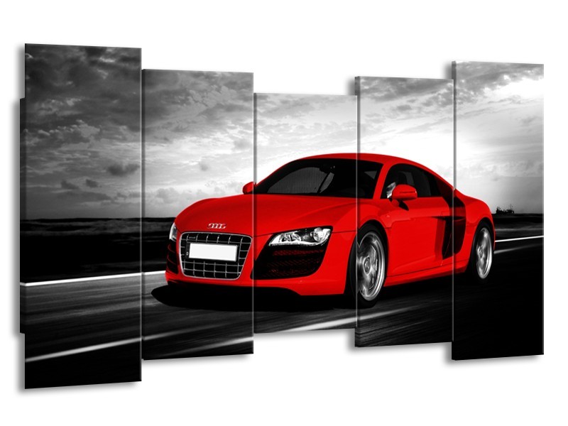 Glasschilderij Audi, Auto | Zwart, Grijs, Rood | 150x80cm 5Luik