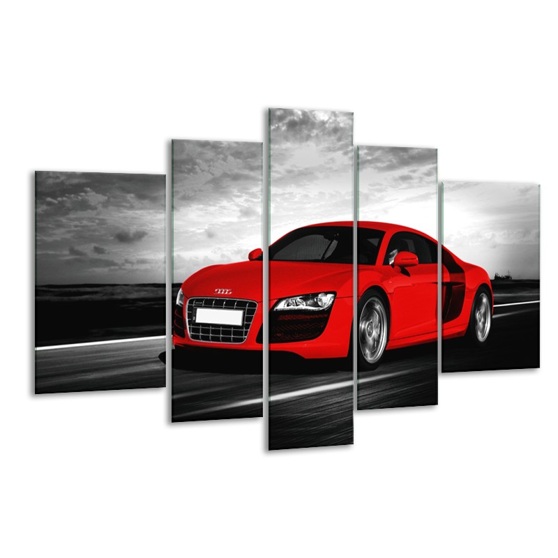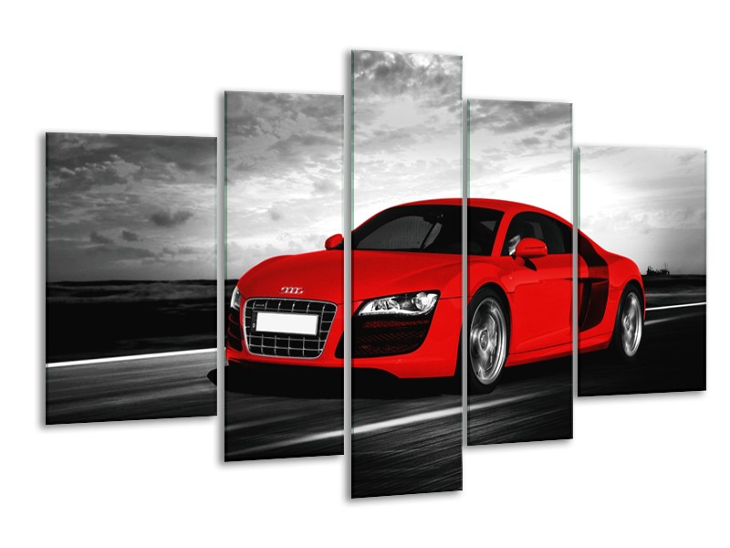 Glasschilderij Audi, Auto | Zwart, Grijs, Rood | 170x100cm 5Luik