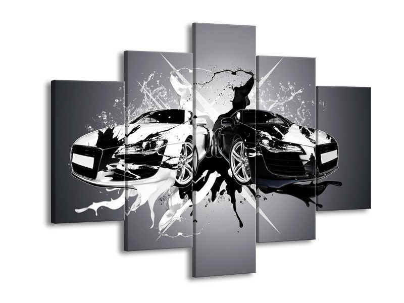 Glasschilderij Audi, Auto | Zwart, Wit, Grijs | 150x105cm 5Luik