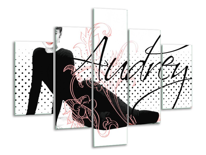 Glasschilderij Audrey, Popart | Zwart, Wit, Rood | 100x70cm 5Luik
