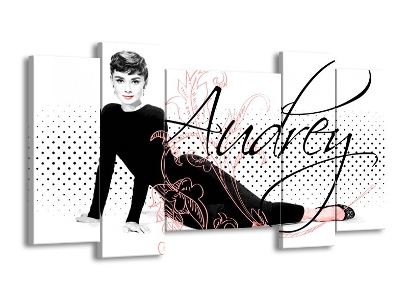 Glasschilderij Audrey, Popart | Zwart, Wit, Rood | 120x65cm 5Luik