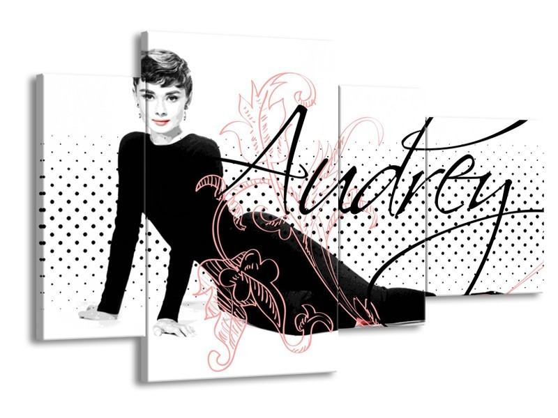 Glasschilderij Audrey, Popart | Zwart, Wit, Rood | 120x75cm 4Luik