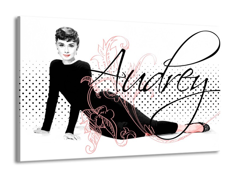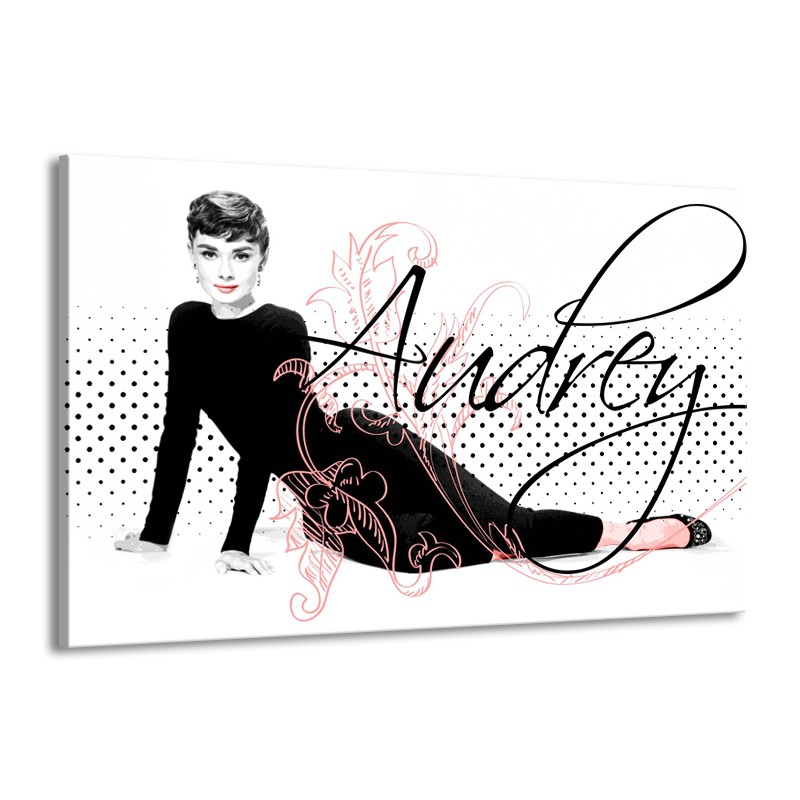 Glasschilderij Audrey, Popart | Zwart, Wit, Rood | 140x90cm 1Luik