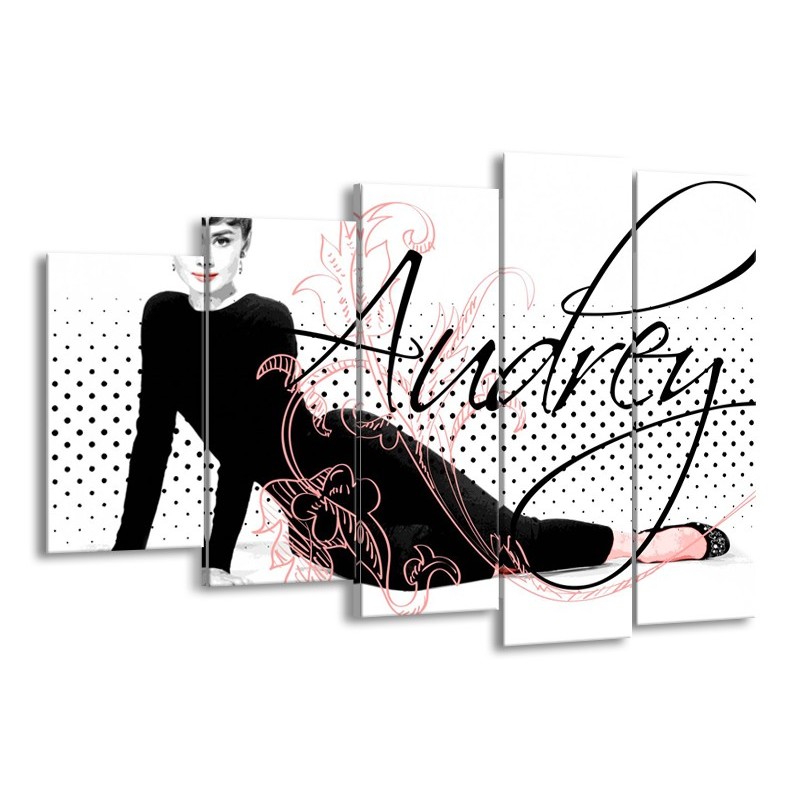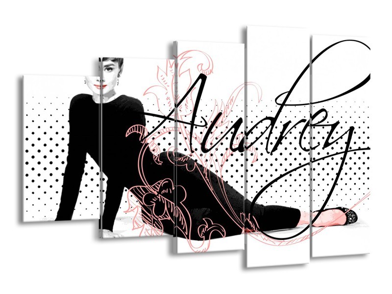Glasschilderij Audrey, Popart | Zwart, Wit, Rood | 150x100cm 5Luik