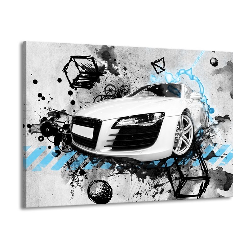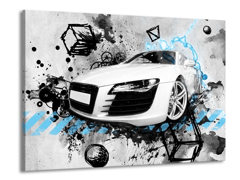 Glasschilderij Auto, Audi | Wit, Blauw, Zwart | 100x70cm 1Luik