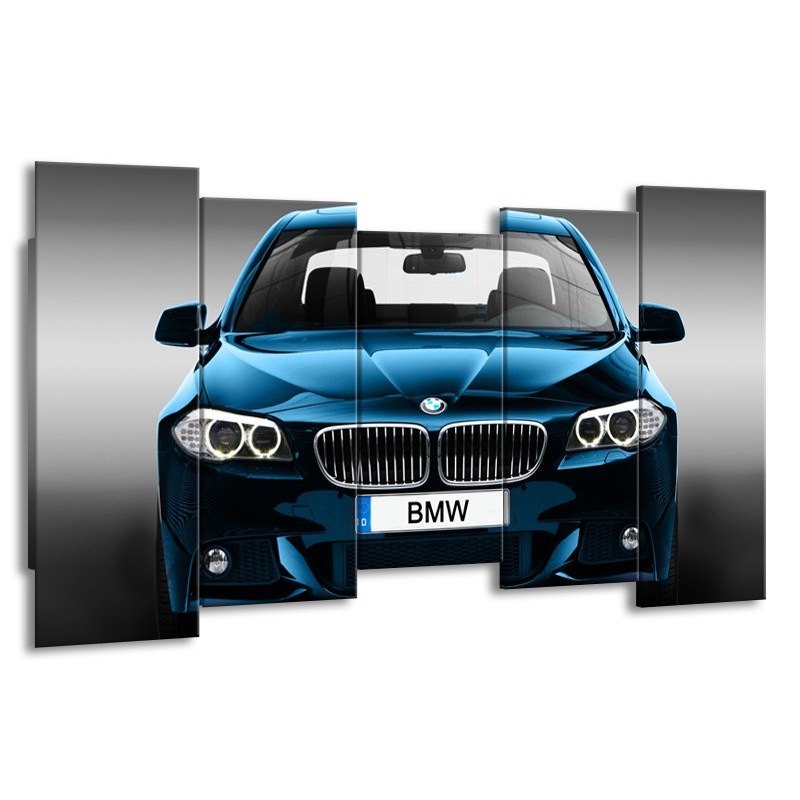 Glasschilderij Auto, BMW | Blauw, Zwart, Grijs | 150x80cm 5Luik