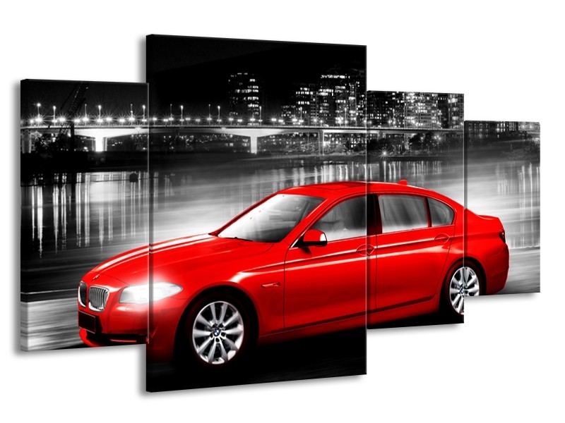 Glasschilderij Auto, BMW | Rood, Zwart, Grijs | 160x90cm 4Luik