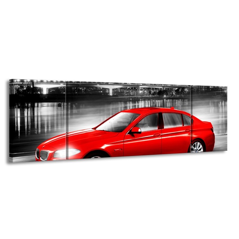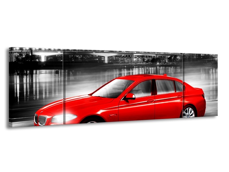 Glasschilderij Auto, BMW | Rood, Zwart, Grijs | 170x50cm 3Luik