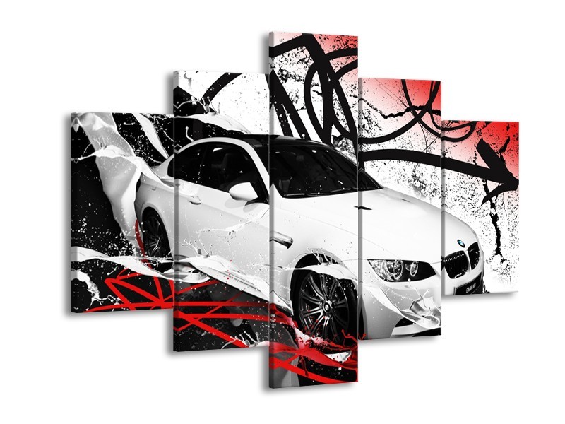 Glasschilderij Auto, BMW | Wit, Rood, Zwart | 150x105cm 5Luik
