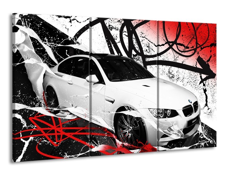 Glasschilderij Auto, BMW | Wit, Rood, Zwart | 165x100cm 3Luik