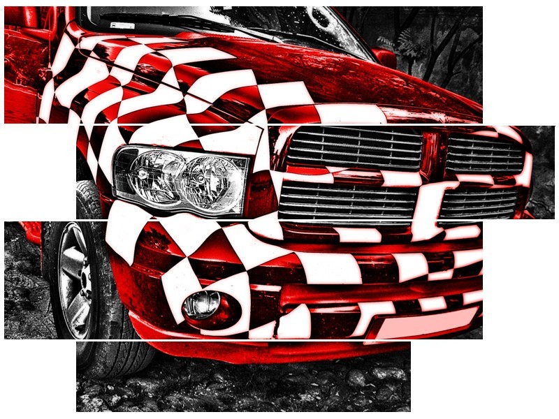 Glasschilderij Auto, Dodge | Rood, Zwart | 115x85cm 4Luik