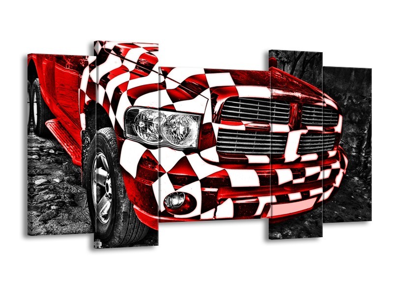 Glasschilderij Auto, Dodge | Rood, Zwart | 120x65cm 5Luik