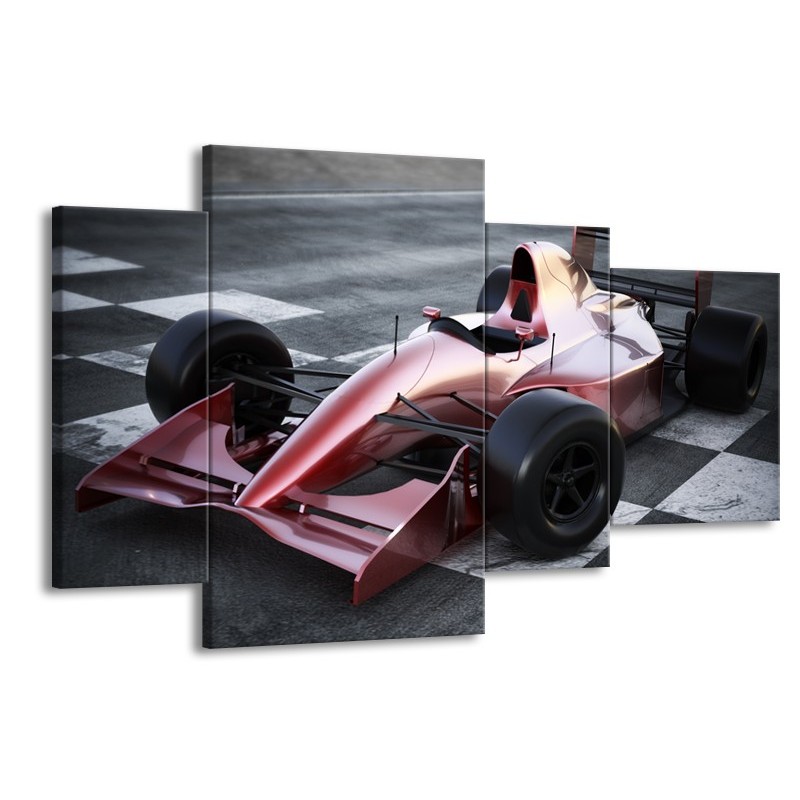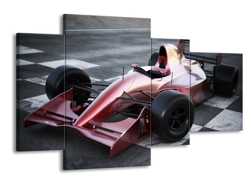 Glasschilderij Auto, Formule | Grijs, Roze, Rood | 120x75cm 4Luik