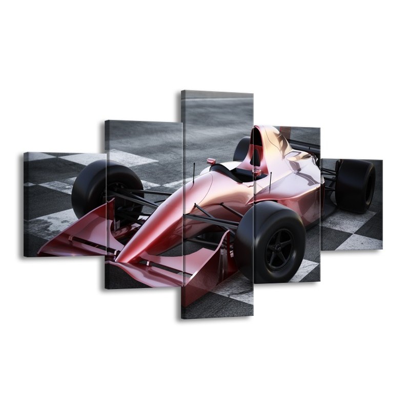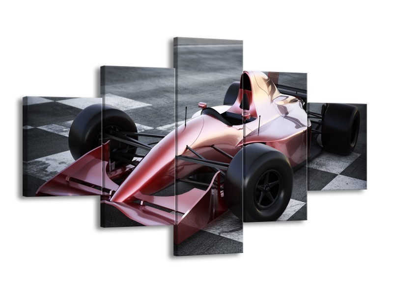 Glasschilderij Auto, Formule | Grijs, Roze, Rood | 125x70cm 5Luik