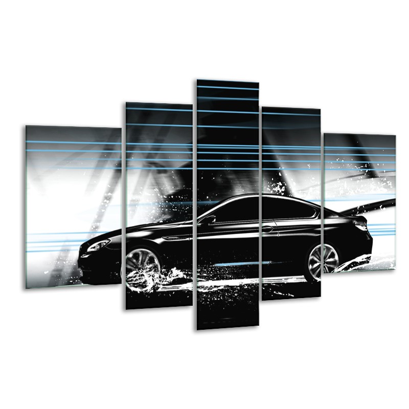 Glasschilderij Auto | Grijs, Zwart, Blauw | 170x100cm 5Luik