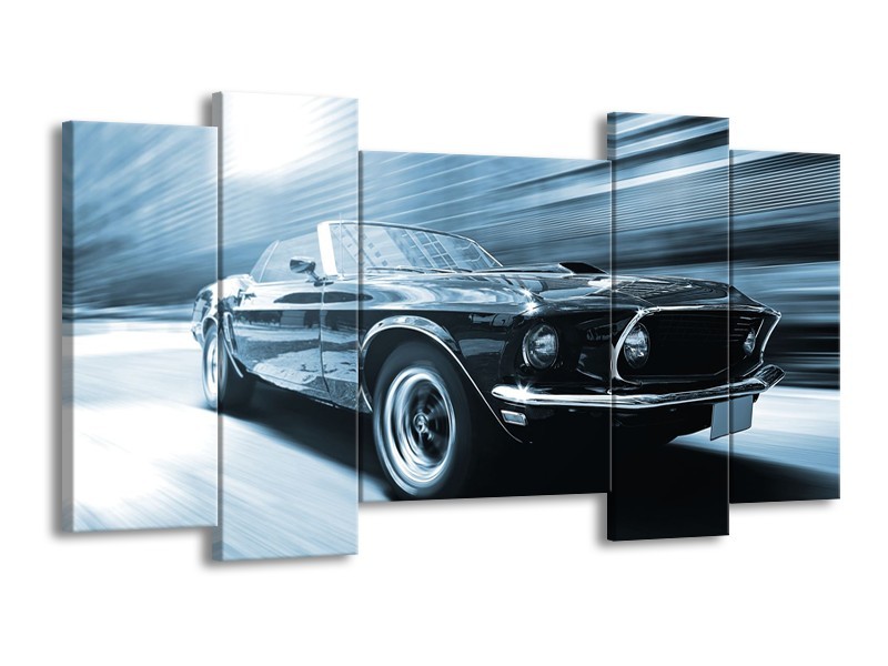 Glasschilderij Auto, Mustang | Blauw, Wit | 120x65cm 5Luik