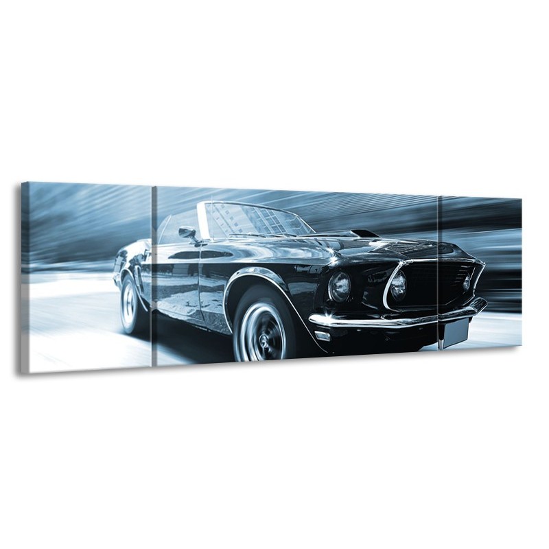 Glasschilderij Auto, Mustang | Blauw, Wit | 170x50cm 3Luik