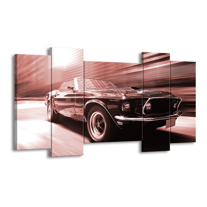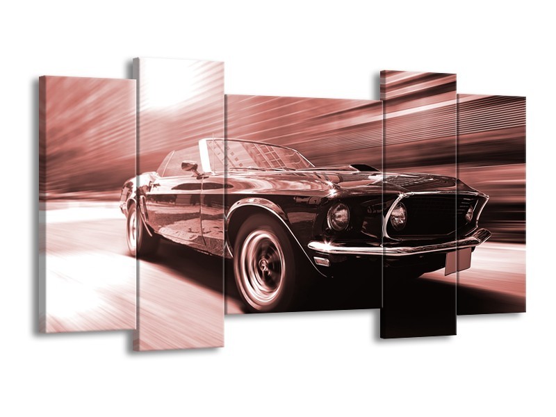 Glasschilderij Auto, Mustang | Bruin, Rood | 120x65cm 5Luik