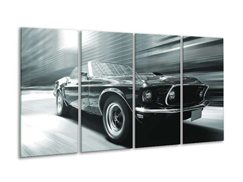 Glasschilderij Auto, Mustang | Grijs, Groen, Zwart | 160x80cm 4Luik