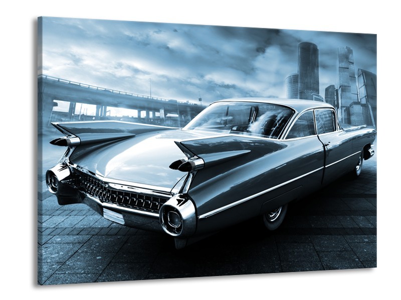 Glasschilderij Auto, Oldtimer | Blauw | 100x70cm 1Luik