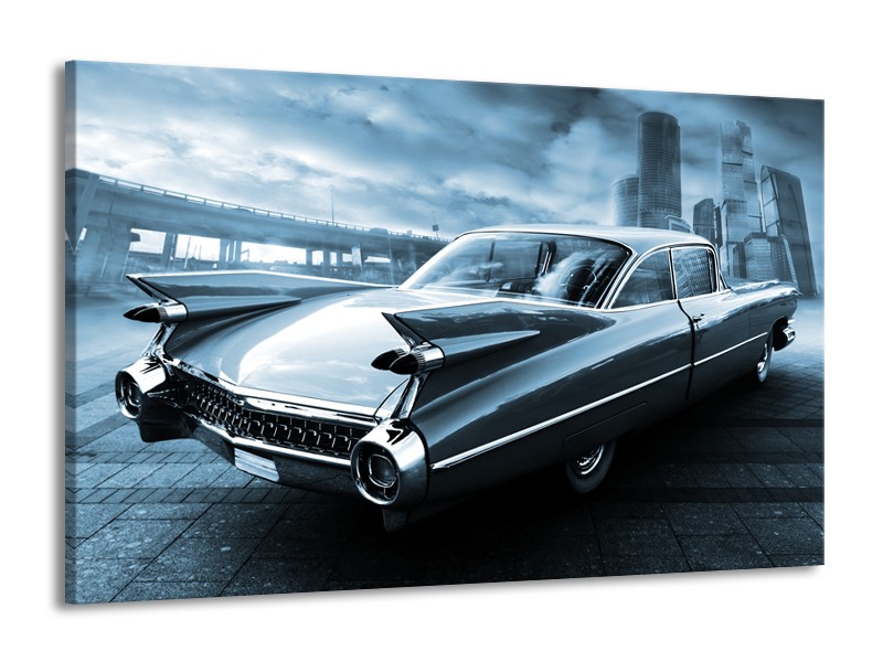 Glasschilderij Auto, Oldtimer | Blauw | 140x90cm 1Luik