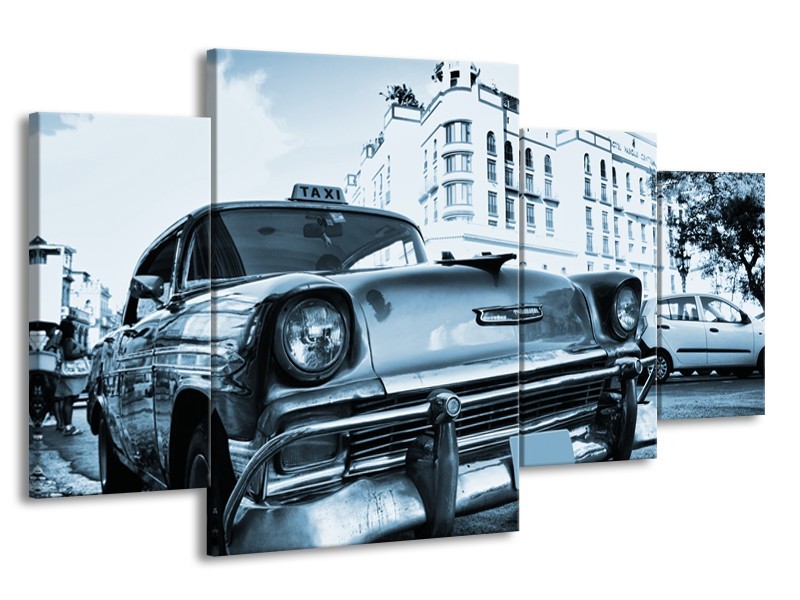 Glasschilderij Auto, Oldtimer | Blauw | 160x90cm 4Luik