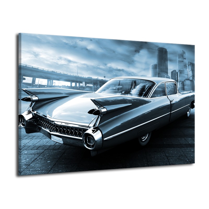 Glasschilderij Auto, Oldtimer | Blauw | 70x50cm 1Luik