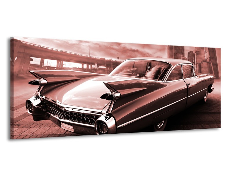 Glasschilderij Auto, Oldtimer | Bruin, Rood | 145x58cm 1Luik