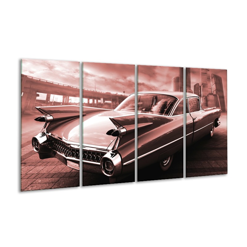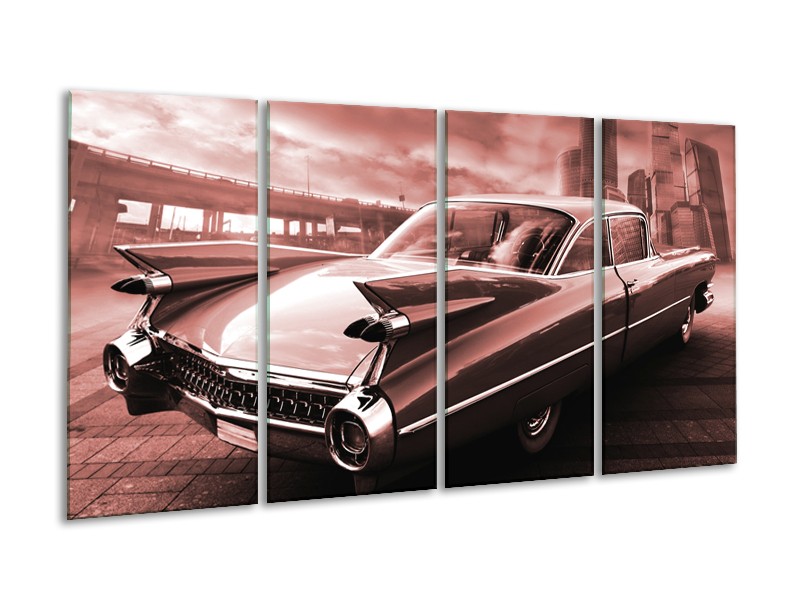 Glasschilderij Auto, Oldtimer | Bruin, Rood | 160x80cm 4Luik